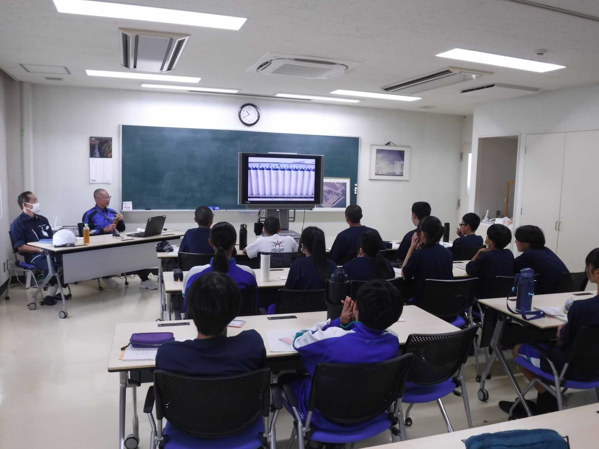 聖籠中学校 第1学年総合学習「東港フィールドワーク」ということで 新潟支店と全農くみあい飼料 新潟工場で受入れし10/2(16名)、10/3(13名)、 引率先生各1名が新潟支店に来店しました。 各日、支店長・工場長による会社概要説明と営業部による施設見学を行いました。 施設のスケールの大きさとサイロ上から自分達の学校が見えた等、学生のテンションもあがってました。 当社事業をより身近に感じてもらえるとありがたいです。