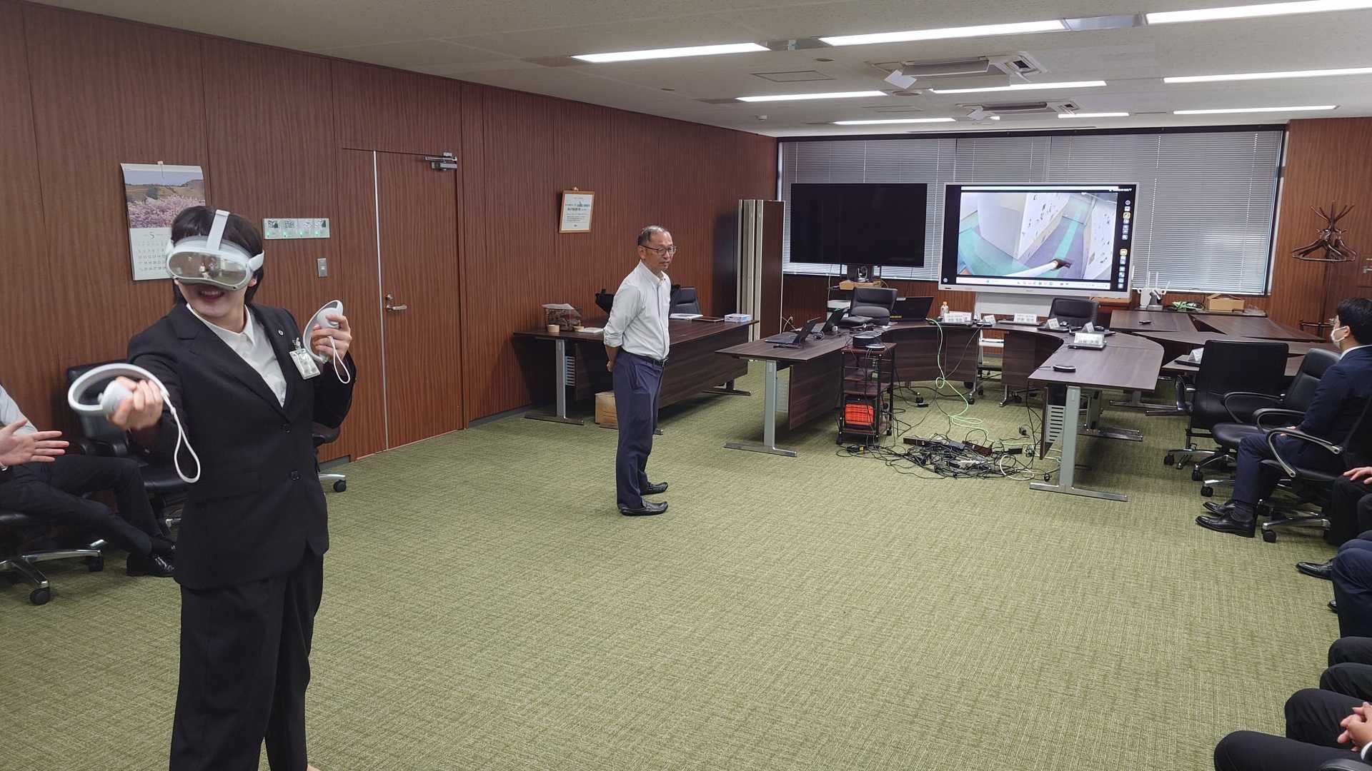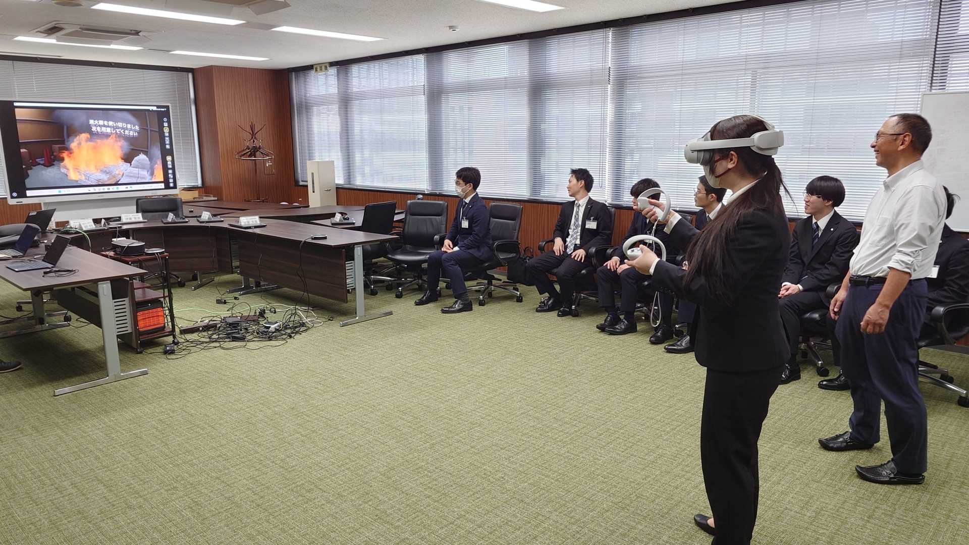 入社後、最初の約1週間にわたり新入社員研修を実施しました。 各部門での研修に加え、施設管理部の研修では、粉塵爆発の実験および感電体験機器を用いたVR訓練を実施しました。
